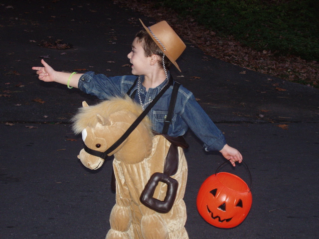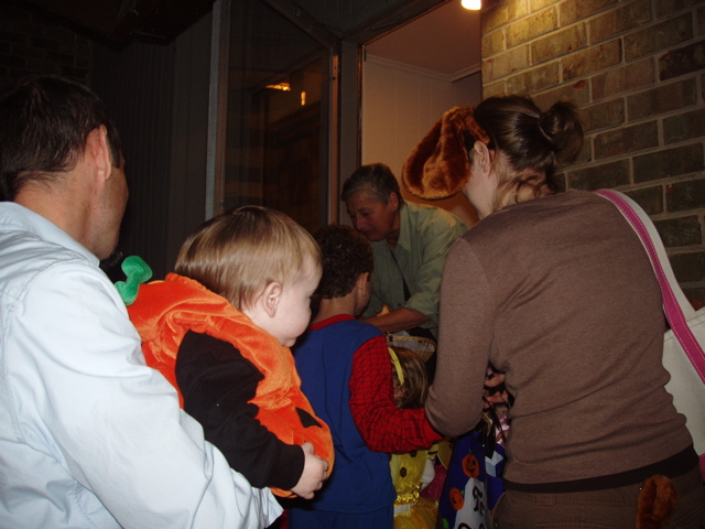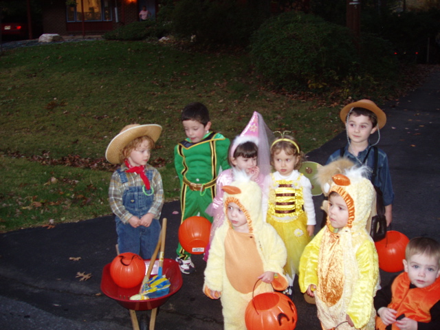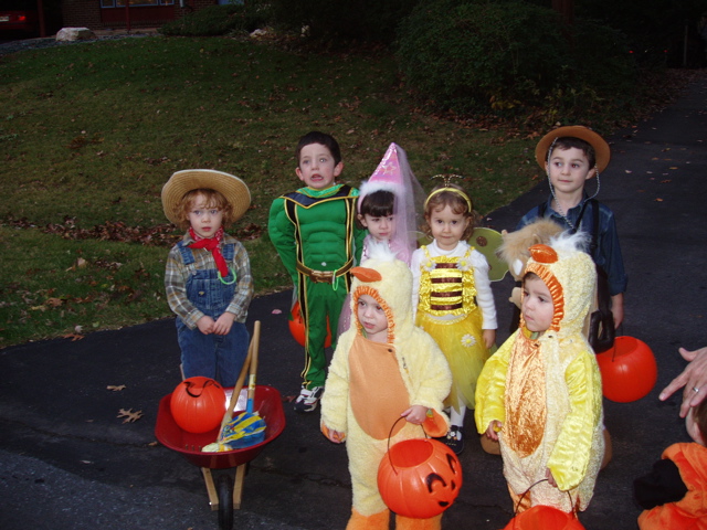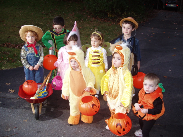 Evan and Dara Baylinson organized a traveling troupe of trick-or-treaters on Halloween!