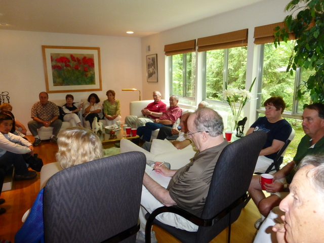 On July 4, 2015 we had our usual bicycle parade, but threatening rain made us move the party and business meeting to the home of Donna and Lance. Here are a few pictures from the event. Look under the Business tab on the main page for the meeting minutes.